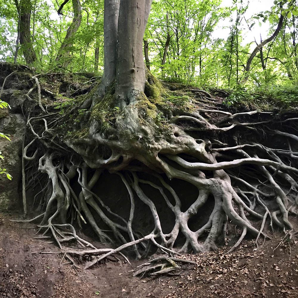 So wie diese Wurzeln die schöne Hainbuche stützen ist eine sorgsame und nachhaltige Pflege eines Gartens essentiell für dessen Gedeihen und Funktion.